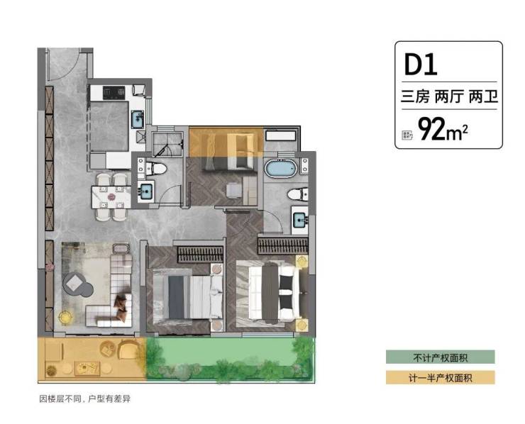 在寸土寸金的城市之中,户型使用率是决定居者生活舒适度的关键。92㎡户型以近100%的使用率,获得了昆山一众购房者的青睐。