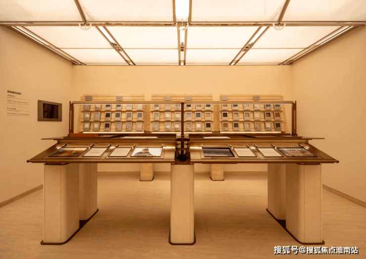 皇家白奢石、Prada绿皮革面奢石、砖纹定制铝板...细节中透露出精致与考究。工艺工法间对72种奢材的展示,让人心悦诚服。