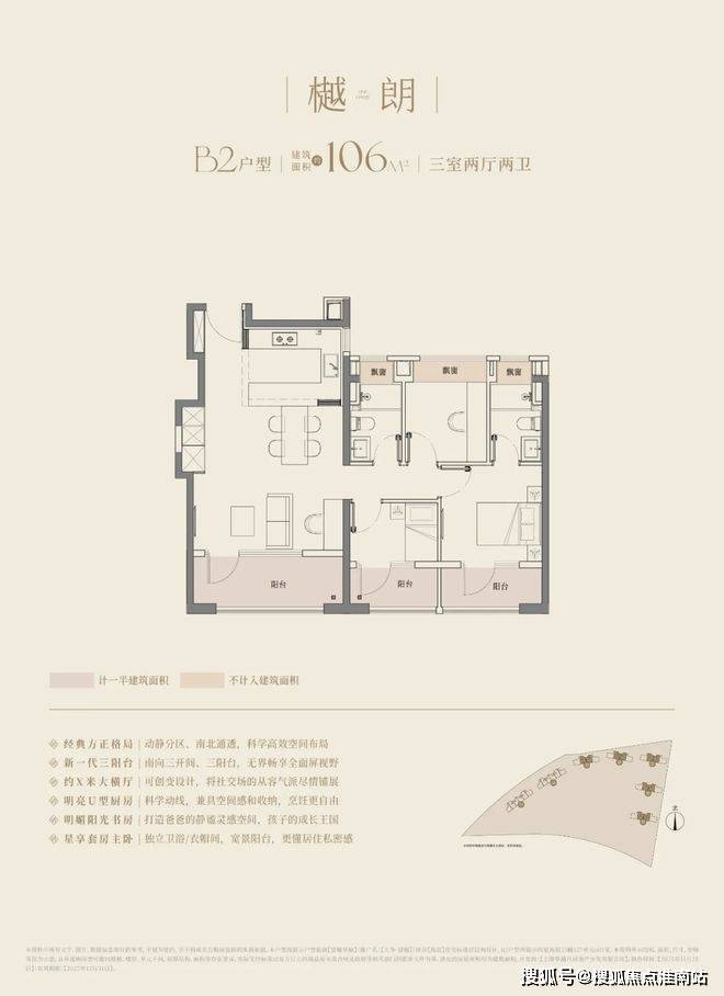 建筑面积约94-126㎡的全能尺度,全户型三开间三阳台配置,可以满足所有阶段家庭的空间需求。