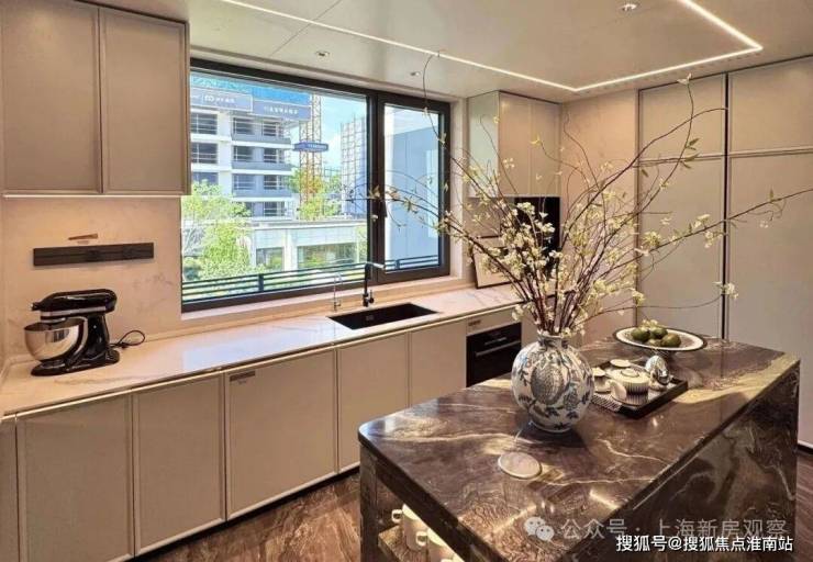 8、不仅是金钱上的奢侈,更是时间广度的奢侈。比如,整个下沉式庭院材料选用土耳其进口老虎玉,由匠人耗时60天手工打磨定制,可见海上·清和玺对业主归家仪式感设计的用心与苛求。海派光厅之外的归家迎宾树木更是由设计师辗转多个城市才寻到的、树龄超60年的福木“紫薇”。