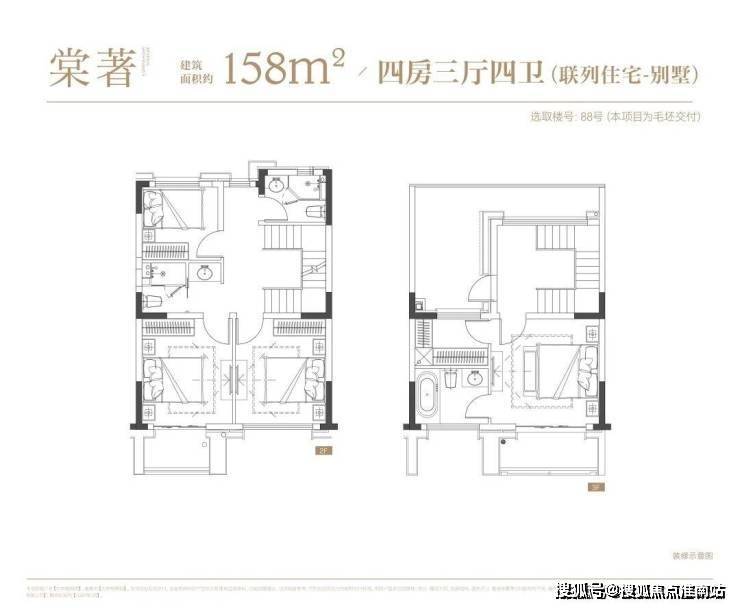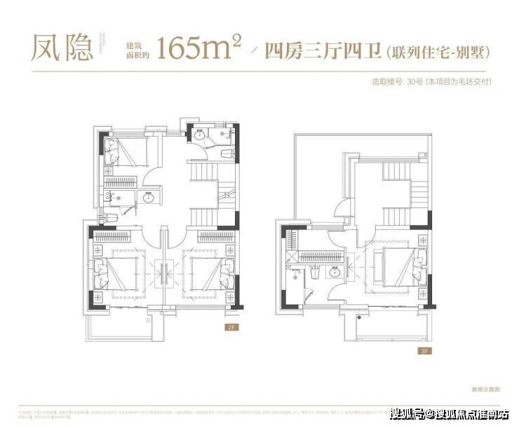 叠墅:叠墅一共四层,分为上/下叠,上叠建筑面积约139㎡,下叠建筑面积约142㎡。