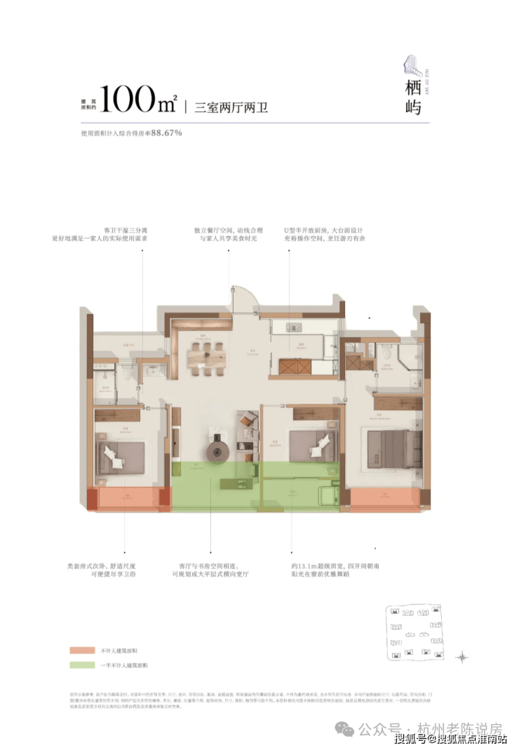不止是价格友好,全盘建面约89-132㎡的户型里,最高实际得房率更是达到100%!