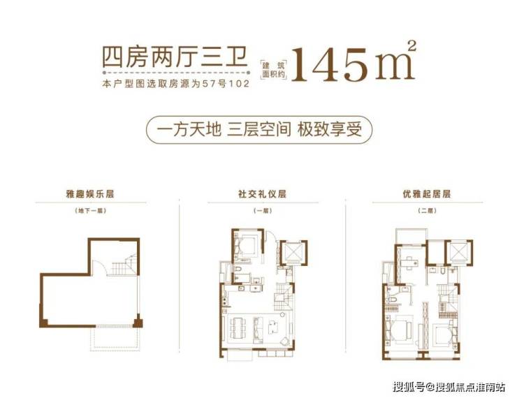 墅产品分为4F、6F层叠加, 主力产品建面约约122-133㎡上叠,132㎡大平层,131-145㎡下叠。