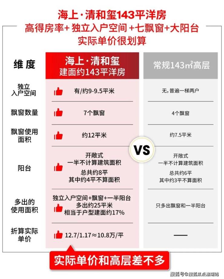 值得一提,相比高层,洋房本就得房率高,海上·清和玺更是凭借“独立入户空间+七飘窗+大阳台”,实得率拉满!