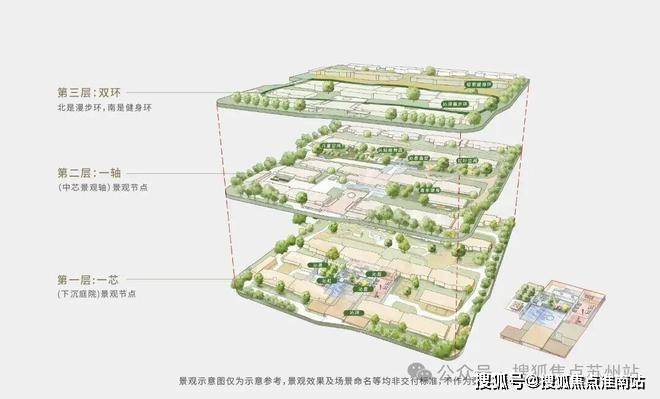 “立体景观芯”,下沉庭院复合型功能空间,非平面铺陈,目之所及皆是立体画境。