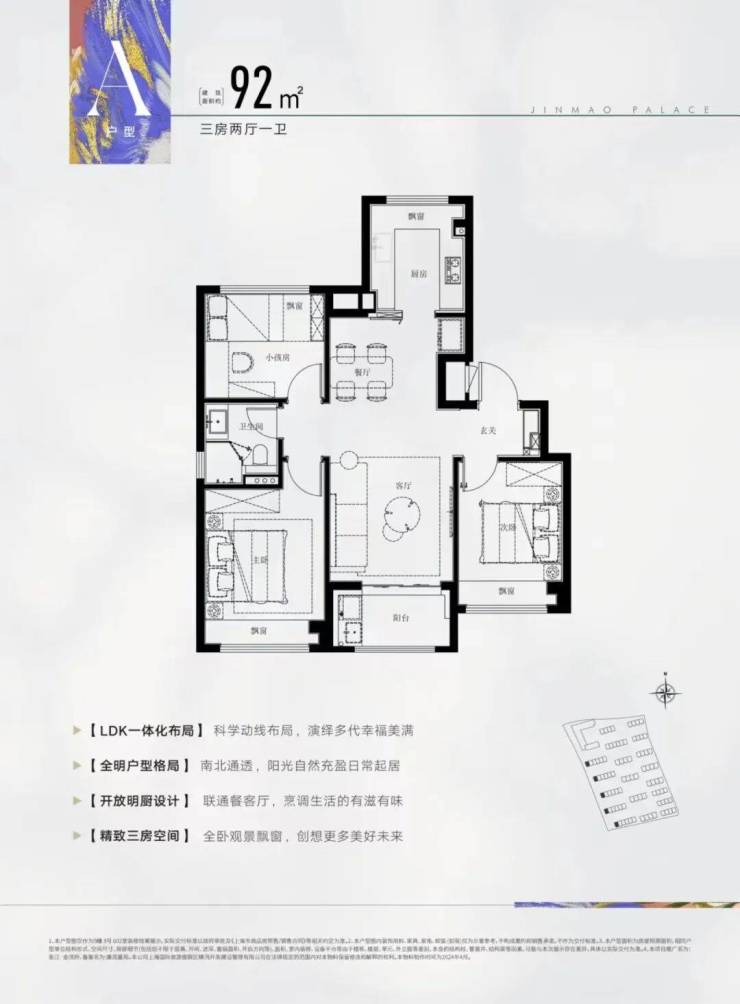 建面约92㎡3房2厅2卫