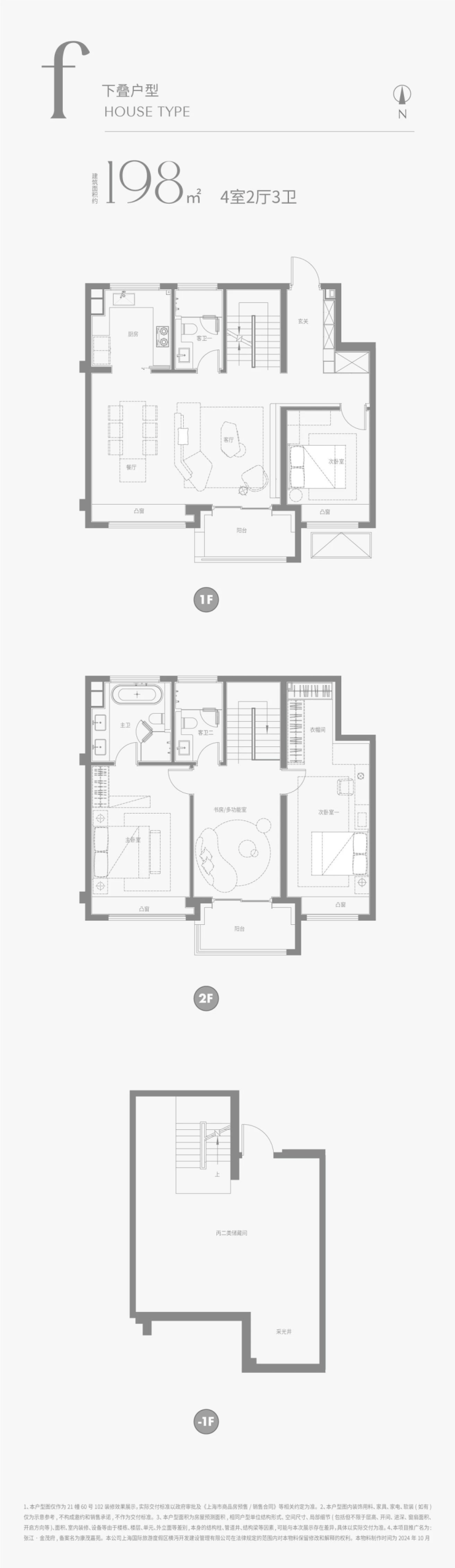 建面约198m²下叠户型图: