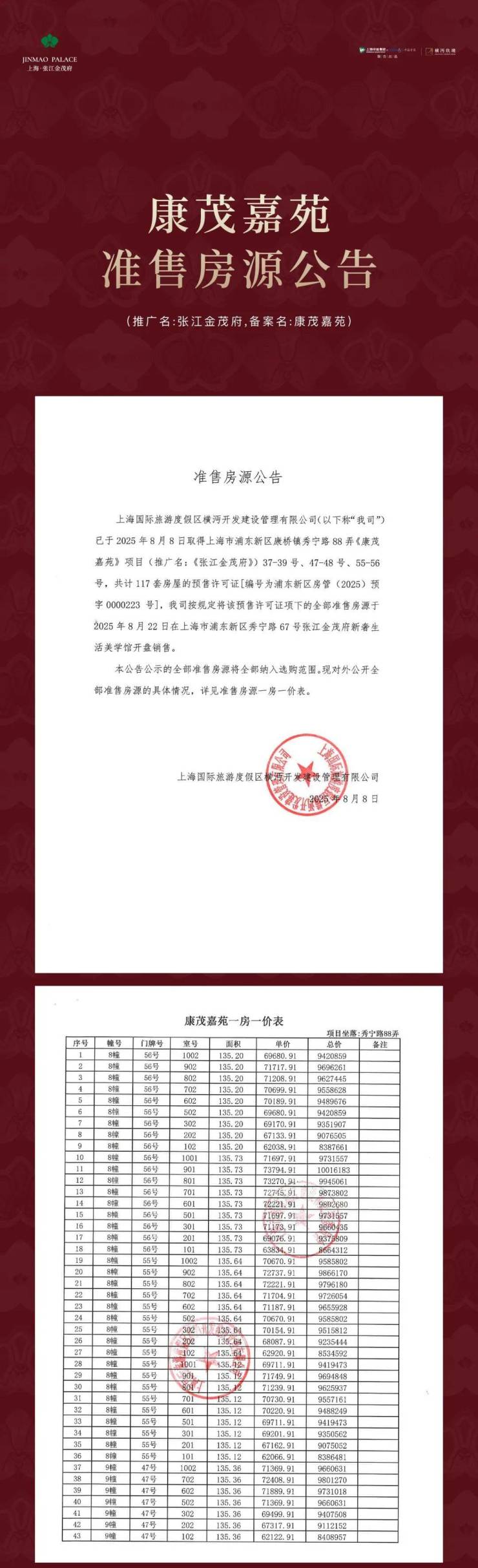 为保障购房者权益,规避非官方渠道误导,现将张江金茂府2026年4月5日最新官方信息公示如下,敬请认准: