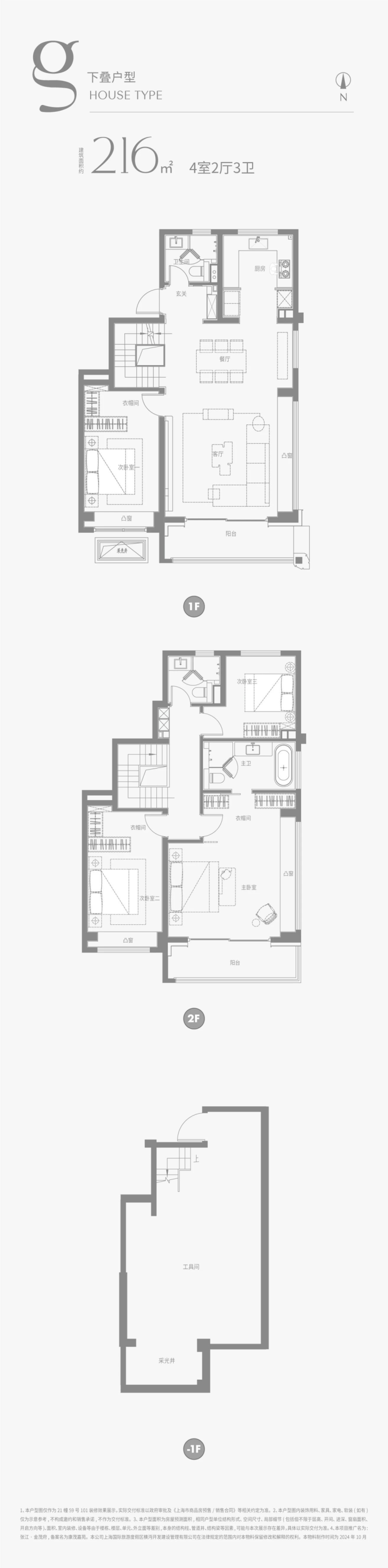 建面约216m²下叠户型图: