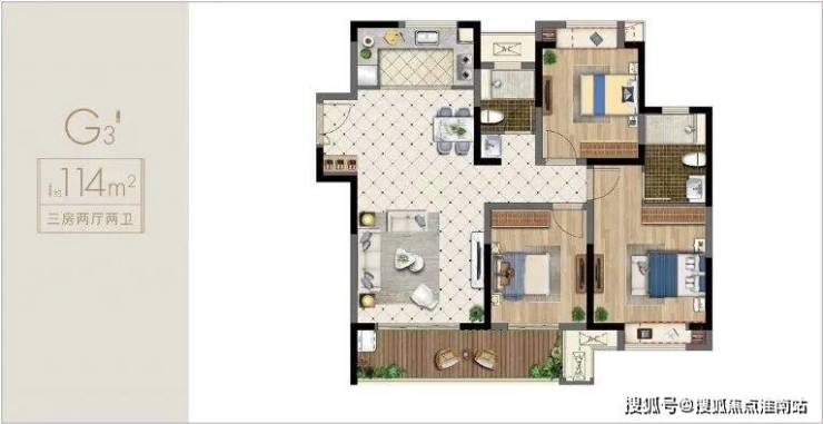 在房间的设计上,一层是餐客厅的设计、大横厅加一个卧室。另一层是三房两卫,两个卧室向南。3套房的设计,都标配了独立卫浴、步入式衣帽间,无论是从空间尺度还是房间分配上都能轻松碾压大平层,无论是三孩家庭还是三代同堂都可以欢聚一堂。