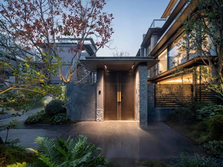 琨悦廷的墅区院门以门廊的模样,展现独特的建筑风格。现代隐奢的南北立面与高墙大院的私密空间,真的进一步增强了墅区生活「庭院深深深几许」的层次感。