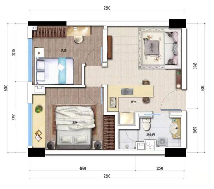 55方两室一厅一卫