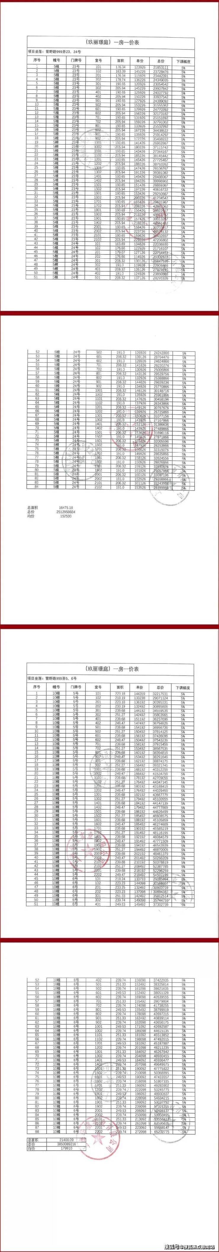五批次最新一房一价表: