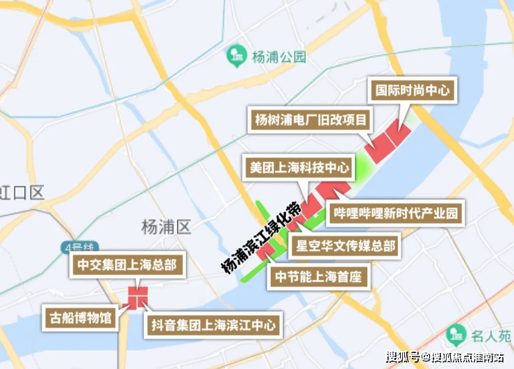 杨浦滨江拥有美团上海科技中心、bilibili全球总部等大型企业总部;区域内还拥有字节跳动上海滨江中心、中交集团上海总部、中国节能·上海首座等企业上海总部落址,预计产业规模达3000亿,导入至少20万人口。