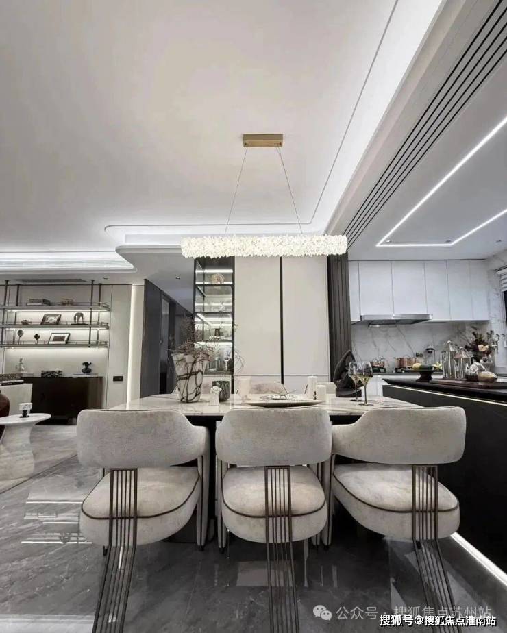 进到实地约99平样板房,整个玄关柜几乎全部都是皮质缝线包裹,细节拉满;