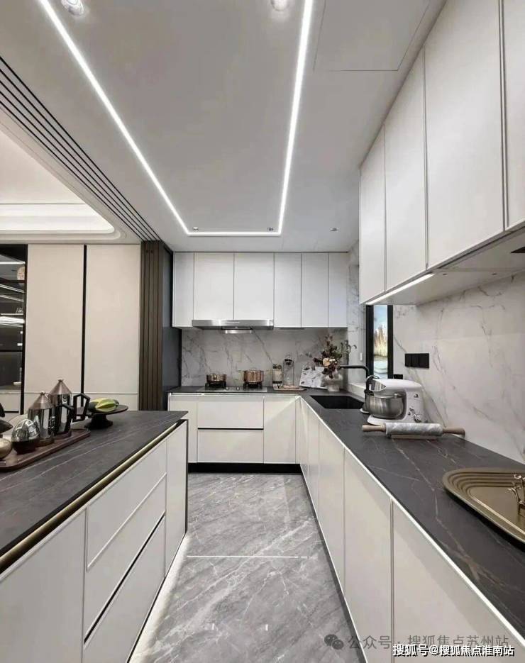 收纳空间全部都是来自博洛尼专属定制(或同等品牌),真正做到拎包入住、省去后期定制比价的烦恼;而在收纳空间之外,外滩源著在用料上同样可以称得上卷王——项目厨房台面是全进口的西班牙DEKTON品牌:
