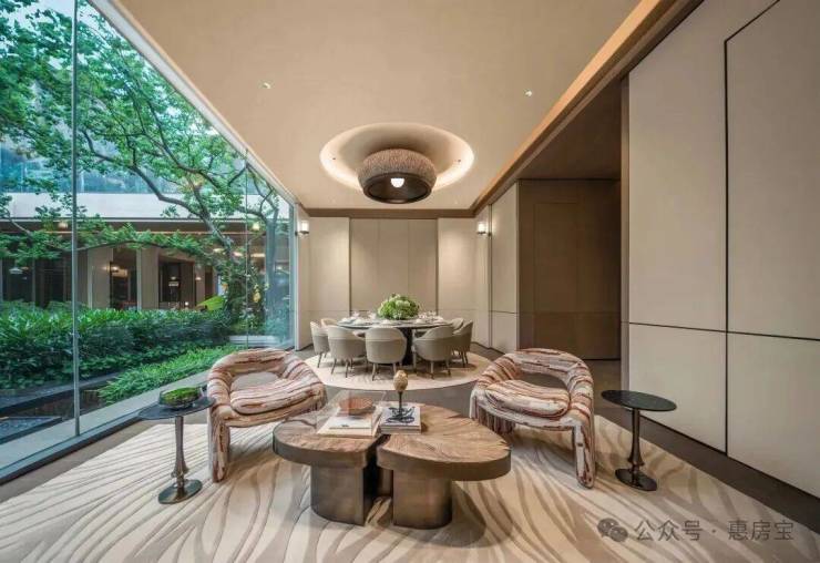 巧妙利用建筑高差,营造立体多维的景观层次,打破沉闷压抑感,使下沉式会所与庭院景观自然衔接,实现社交空间与生态场景的无界融合。所谓“无会所,不豪宅”,高阶会所是圈层进阶的社交场,是财富的象征与身份的标签。