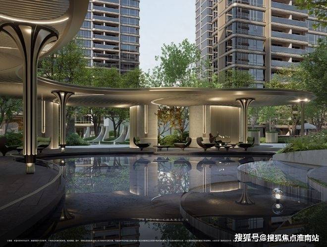 项目也采用当下豪宅新盘才运用的风雨连廊,打造风雨无阻的归家体验的同时,也连接着社区核心景观节点和功能空间,大大增加小区景观的空间体验。