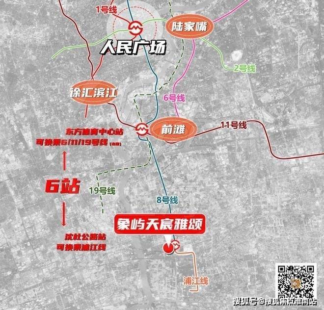 项目出发6站到前滩,15站到人民广场。在前滩东方体育中心站换乘6/11/19号线(在建),可快速触达徐汇滨江及陆家嘴。