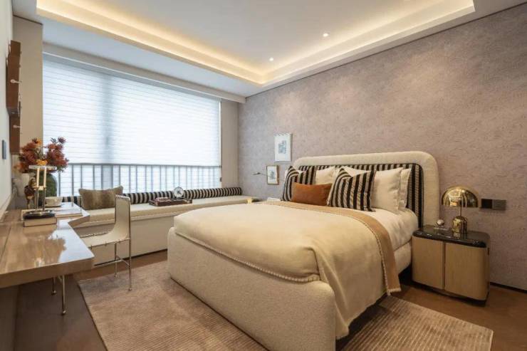 项目建筑设计邀请了九米建筑设计院量身定制,立面风格采用经典锦庐系公建化立面,四面铝板搭配大面积玻璃,封包阳台,整体精致通透,底层以浅色天然石材为主,额外做了圆弧细节,尽显优雅格调。