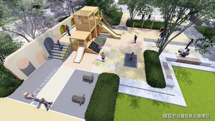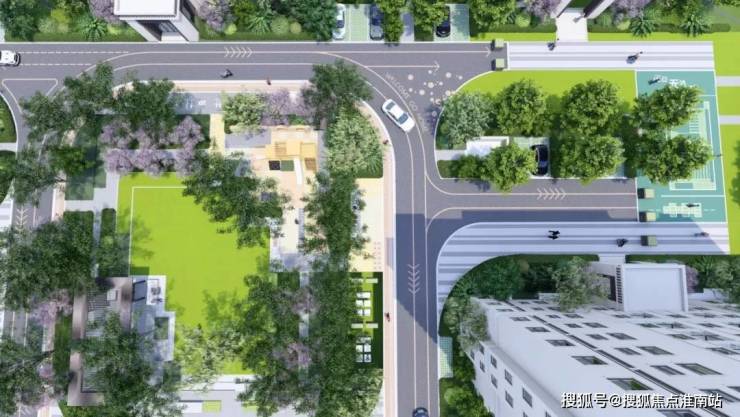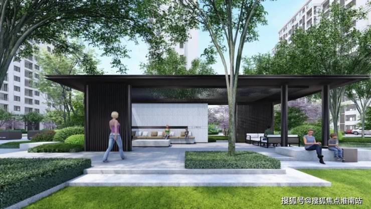 景观方面,中央核心景观轴线连接社区南北。以阳光草坪为中心,布置儿童活动区、健身活动区和社区会客厅、林下广场空间等。