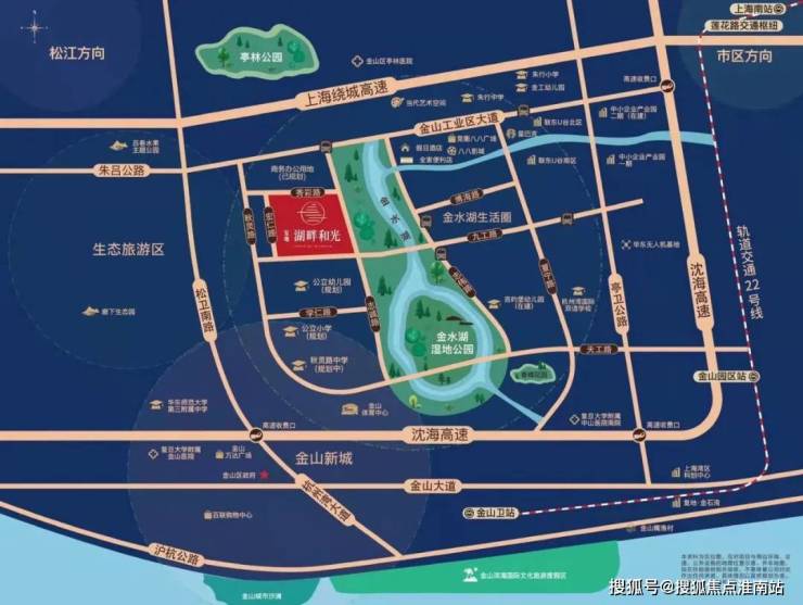 交通配套:轨道交通22号线、莲卫专线、莲张专线(规划中)、S4沪金高速、S19新卫高速、G15沈高速,通达中心城区及大虹桥