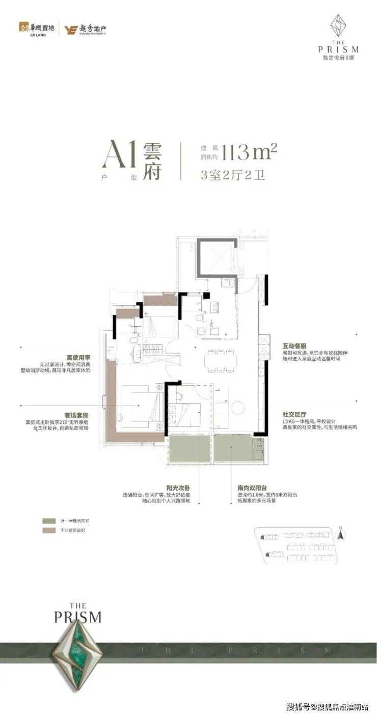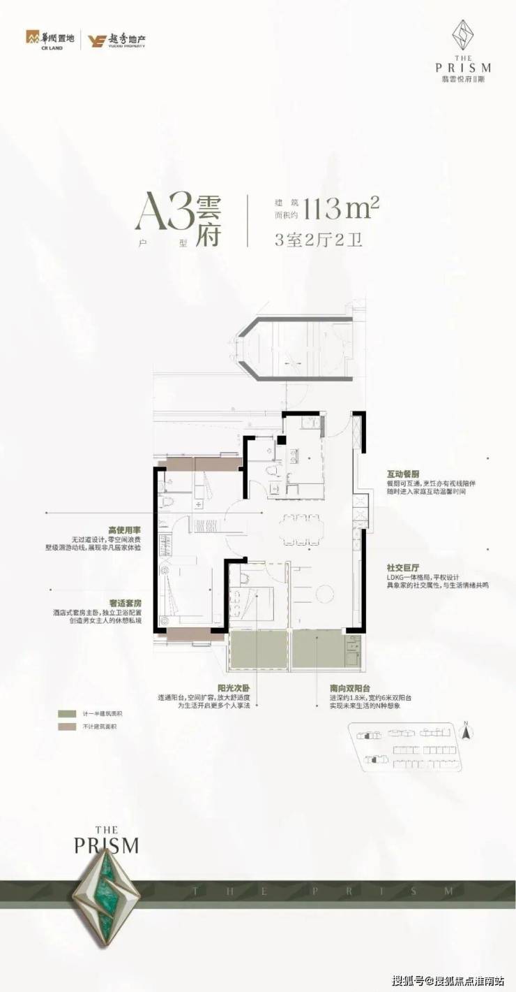 二期113㎡三室两厅两卫户型图,一共三种,每一种都透着华润对刚需的小心思。