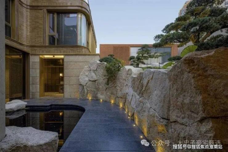 为了使我们在稀缺的地段营造稀缺的资源,把生活的想象现实化,越秀·外滩樾还在会所引“山水入园”。在空间有限的情况下,进行垂直空间的挖掘,营造了坡道景观、山水庭院和会所。