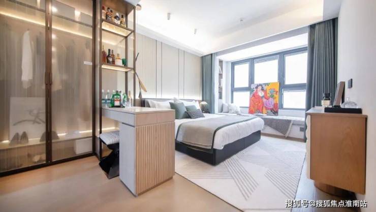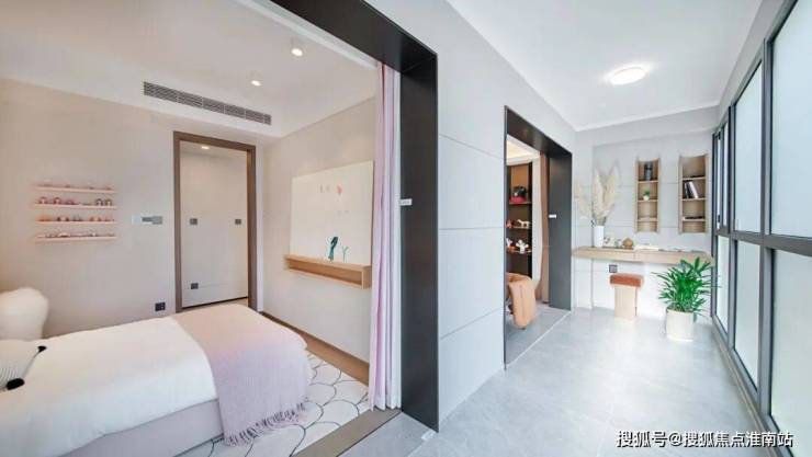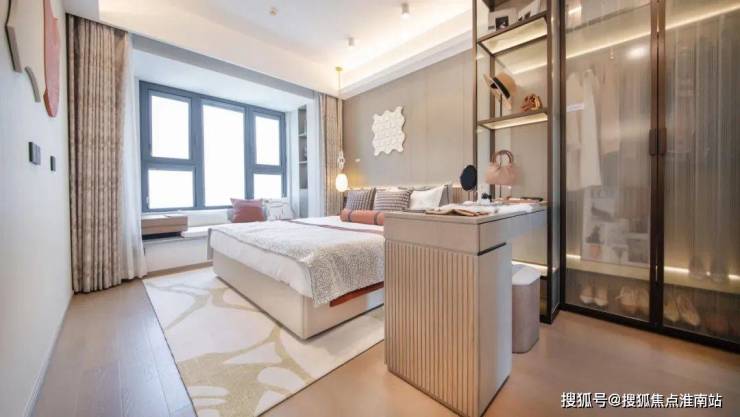 朝南的主卧采用套房设计,为主人定制私人空间。步入式的独立衣帽间,为主人竭力营造奢雅生活。早上从容洗漱,晚上悠闲卸妆,让自在成为生活的常态。更有飘窗设计,为生活留一份可能,在这样一方天地,卧看星辰,品酒赏月,尽享生活的雅趣。