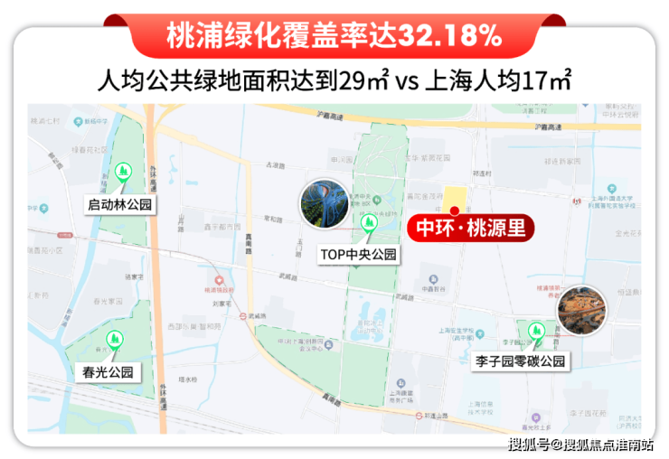 桃浦绿化覆盖率达32.18%,人均公共绿地面积达到29㎡,远超上海市人均公共绿地面积。
