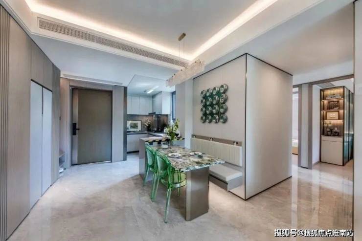 宽厅面宽约5.5米,3.5开间面宽共约11.5米,再加上约8㎡的阳台,使得整个家庭的公共区域尺度感十足、功能也更加灵活多变。