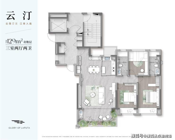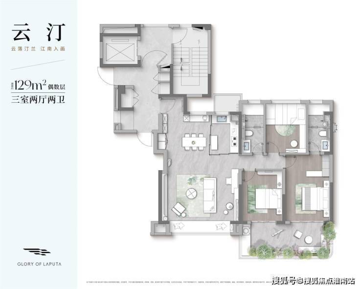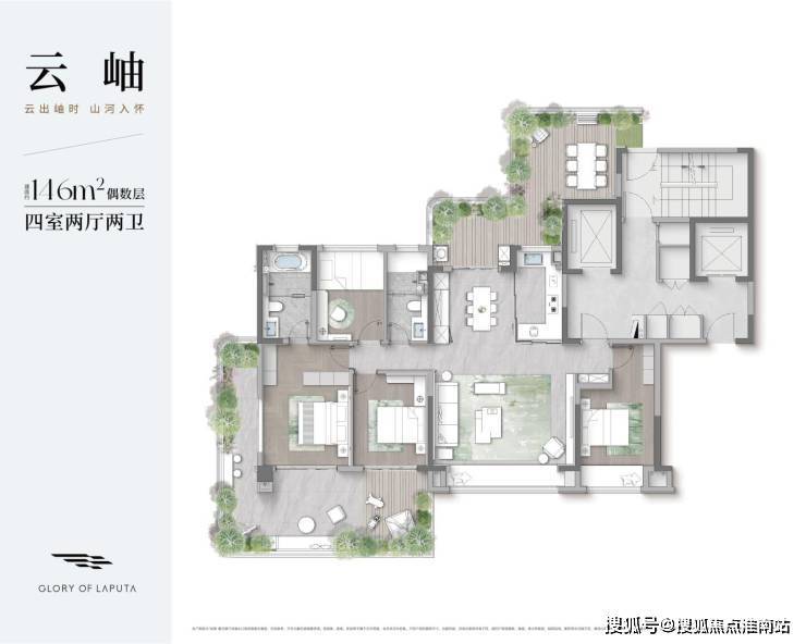 户型:108㎡(四房)、129㎡、146㎡(双露台)、187㎡(高得房率)
