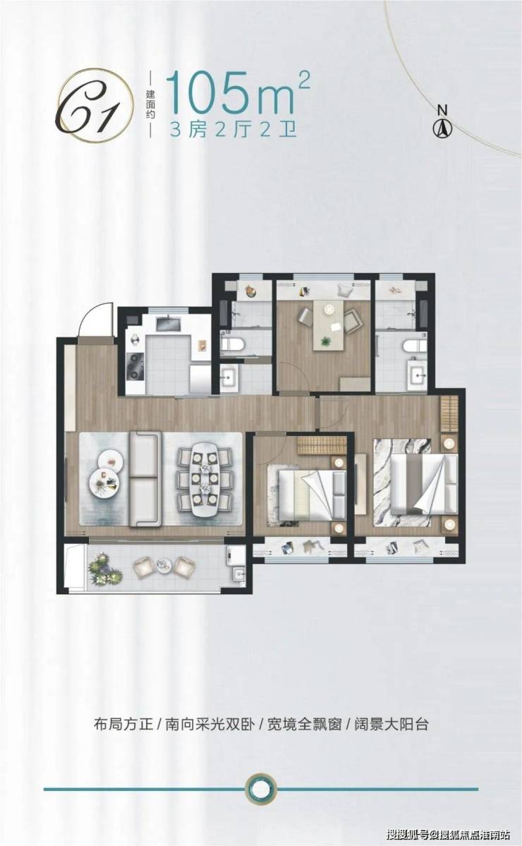 建面约105㎡3房,餐客大横厅设计,与南面阔景阳台相连,采光通风良好。全卧飘窗,主卧套房设计,提升了居住舒适度。U型厨房,动线流畅。 陆家嘴锦绣澜湾售楼处电话:400-9966-224🎀🎀