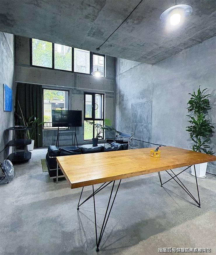 而从这里,也可以一览家中餐厅、客厅和头顶隔层空间的水泥毛坯风格,因为是复式,看起来还有种开扬宽敞的感觉。