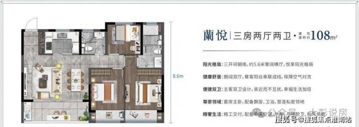 精研建筑面积约108-142㎡全明户型,全屋大飘窗、宽景大阳台、南向大开间、私密主卧套,空间实用与美观兼备,超高得房率与附加值,满足多样家庭功能需求