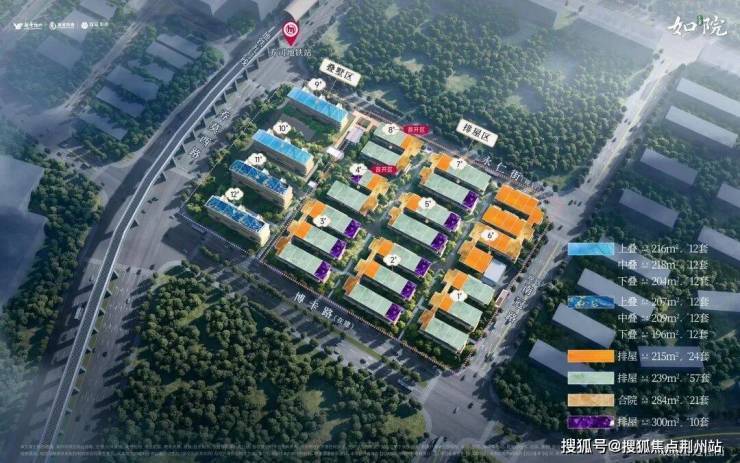 项目总户数184户,规划了91套建面约217-298㎡排屋、72套建面约198-210㎡叠墅、21套建面约284㎡合院,整个小区由中央景观轴线分隔为东西2个组团,东组团是排屋合院区,西组团是叠墅区。
