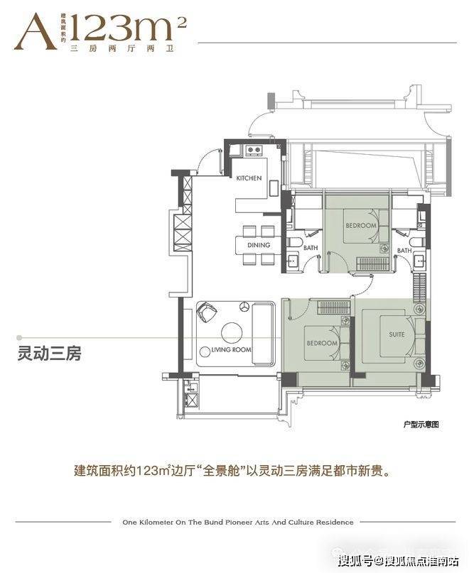 约123㎡边厅全景舱:三房布局满足“入住外滩”的主流需求,无遮挡边套视野将外滩天际线化为私藏画卷;