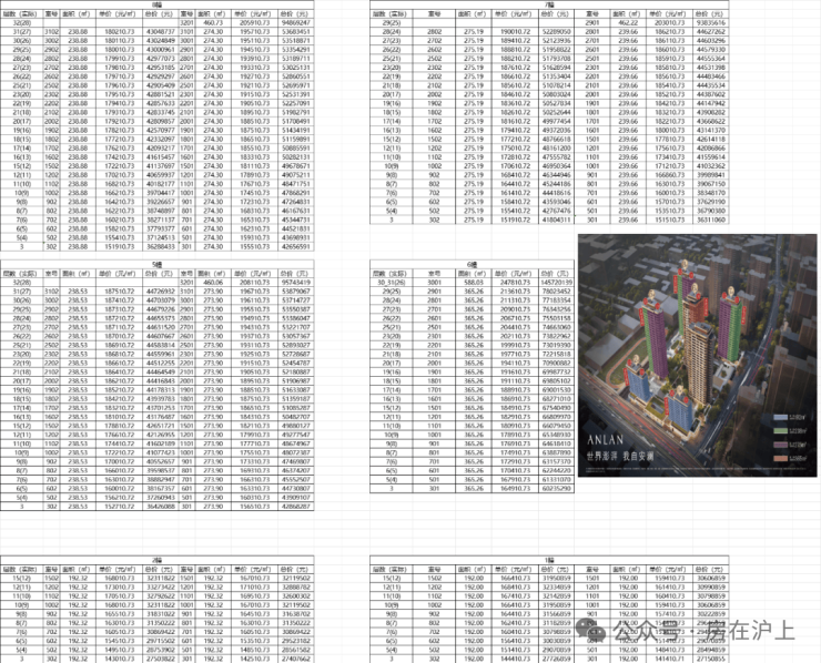 据悉, 安澜上海首批推售西区地块211套房源 ,清一色的改善大户型,圈层纯粹,约195-370㎡稀缺大户型(主力建面195/240/280/370㎡,以及4套420㎡顶楼大平层和2套560㎡顶楼复式)均价17.88万元/㎡,正在热销!