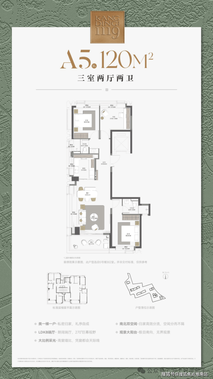 建筑面积约120㎡三房户型,适配南北动静分区结构,是臻藏老静安资产的性价比之王;