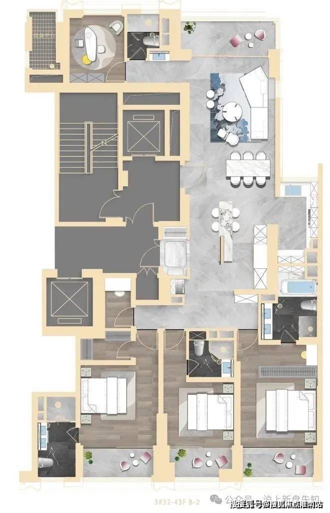尤其主卧星级套房,配置独立衣帽间、书房,奢华主卫四分离,双台盆+淋浴区+大浴缸+智能马桶,私密性&奢适度无敌;