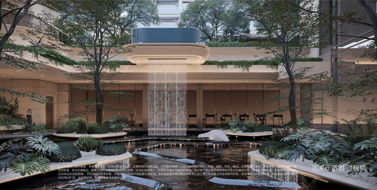 •下沉峡谷:约420㎡丰富层次立体下沉庭院,区域首现悬浮水池,搭配4.3米飞瀑,塑造沉浸式度假感受。