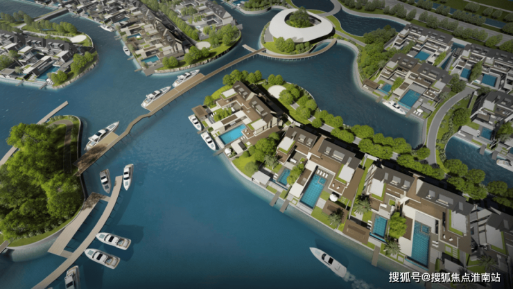 项目从此前曝光的设计方案就可以看出亮点,每一排别墅前都有一条渠道,引入水系,可以停游艇。