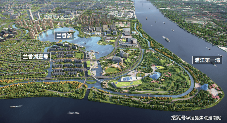 黄浦江从东、南两面环抱整个兰香湖社区,东北侧有兰香湖作为水系中心,钥匙形的外观寓意“以智慧之钥,开启生活之门”。