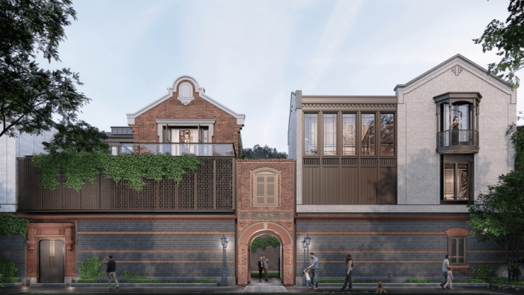 【士林润园】地块包含大量历史文化保护建筑,产品打造的是【叠拼+合院】,叠拼面积段约195-310㎡,分为1-2F下叠、3、4、5F为中间的大平层,6-7F为上叠,合院地上三层,面积段约210-500㎡。