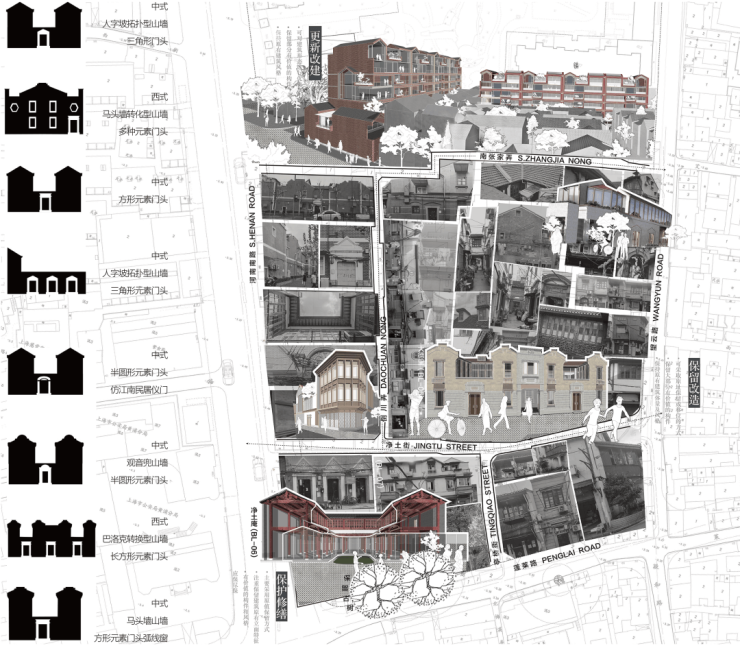 项目区域内的建筑风貌,全区建筑均为低层,普遍以花园式、里弄式、街店式建筑组合呈现。由于“小单元产权”的长期存续,形成了有机且清晰的“接邻式”肌理关系。有着“小而美、巧而精、糅而谐”的特质。