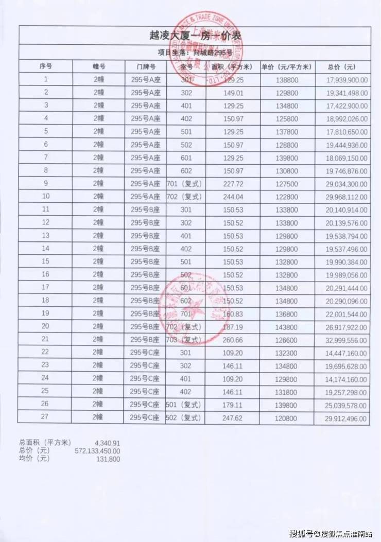 一房一价表
