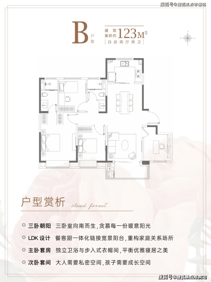 在当下100㎡及以下面积段占绝大多数的情况下,建面约123㎡4房本就十分稀缺。而在产品设计上更加符合全龄段各种家庭结构的居住需求。