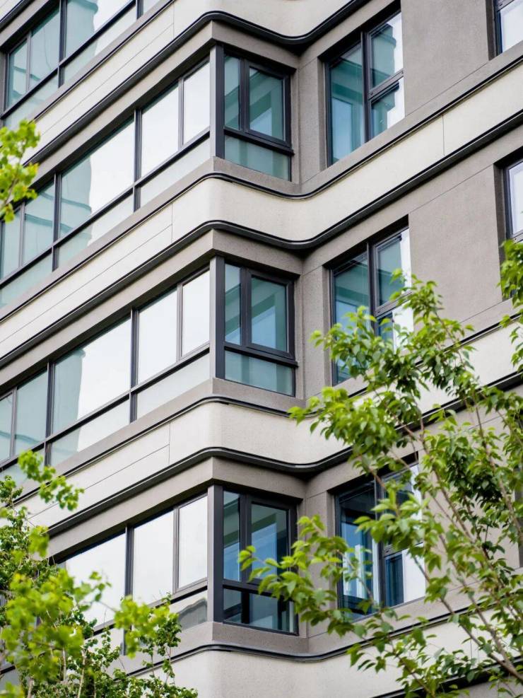 再仔细看,立面细节处,区别于传统,不做简单意义上的纯平和四方棱角,选用了施工难度极高的圆弧转角。
