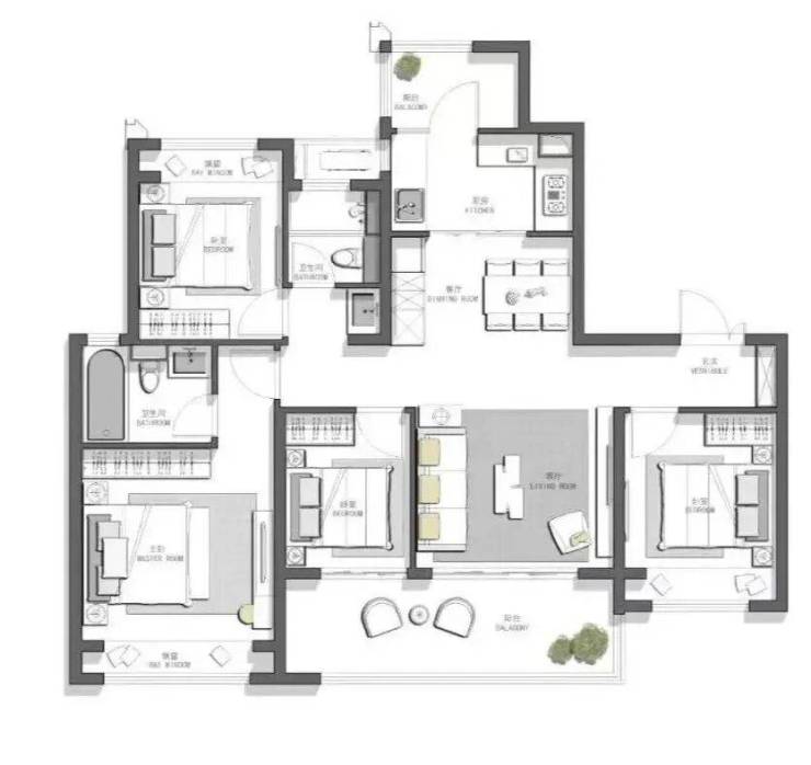 独立玄关 + 中西双厨 + 家政间,功能齐全