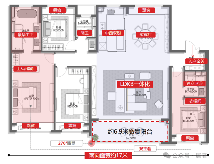 主卧双衣帽间 + 双台盆卫浴,满足高端改善需求